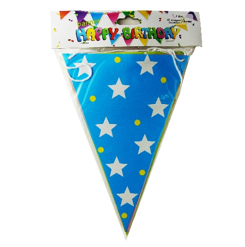 Banner party format din 12 stegulete din hartie cu plastifiere cu designuri variate.Pret pe bucata. Produs disponibil in mai multe modele. Livrarea se va face in functie de disponibilitate.