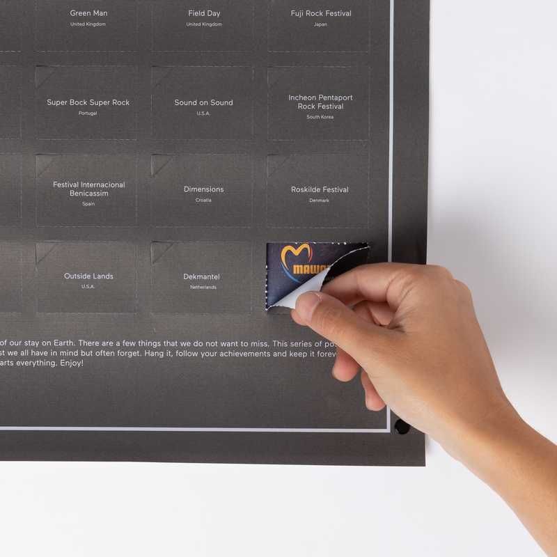 Daca doriti sa va distrati, exista cateva festivaluri de neatins in intreaga lume. Gaseste-te la aceste intalniri legendare inconjurate de muzica, prieteni si vibratii.Acest poster interactiv este o compilatie a tuturor acestor festivaluri uimitoare. Hai, urmareste-ti progresul si pastreaza-l pentru totdeauna in tributul marii lumi a sunetului.Dimensiuni: 65cm x 35cm