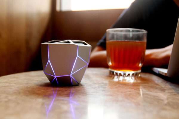 O boxa portabila eleganta prevazuta cu lumini albastre care se aprind in ritmul muzicii.