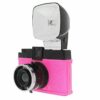 Make the task of taking photographs easy with the retro Diana F+ Mr. Pink from Lomography. It features a detachable 75 mm lens that lets you shoot photos in three apertures or in the pinhole mode. The lens comes with a zone focusing system that focuses on your subjects quickly. The Diana F+ flash, which is attached to the camera through a metal plug connection, lets you shoot your subjects with ease, even in dim light. The color gel filters provide a different look and feel to your photos.Cable Release: Connection Only with AdapterBattery: Type no battery neededAvailable Apertures Pinhole, Cloudy= f8, Half-Shade= f11, Sunny= f16Shutter Speeds: 1/60 (N), Bulb (B)Focal Length: 75mmFilm advance: KnobFlash connection: Diana Flash PlugFocusing: Zone FocusingFocusing Distance: 1m – InfinityFrame Counter: Volume displayMaterial: PlasticTripod Mount: YesLightmeter: NoView Finder: Direct optical viewfinder