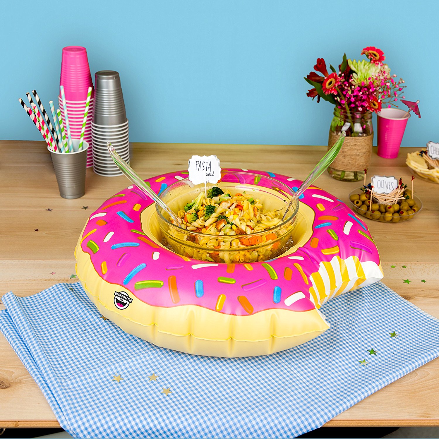 Inveseleste-ti petrecerile cu aceasta gogoasa gonflabil! Sustine boluri pentru gustari, gheata pentru bauturi si multe altele!