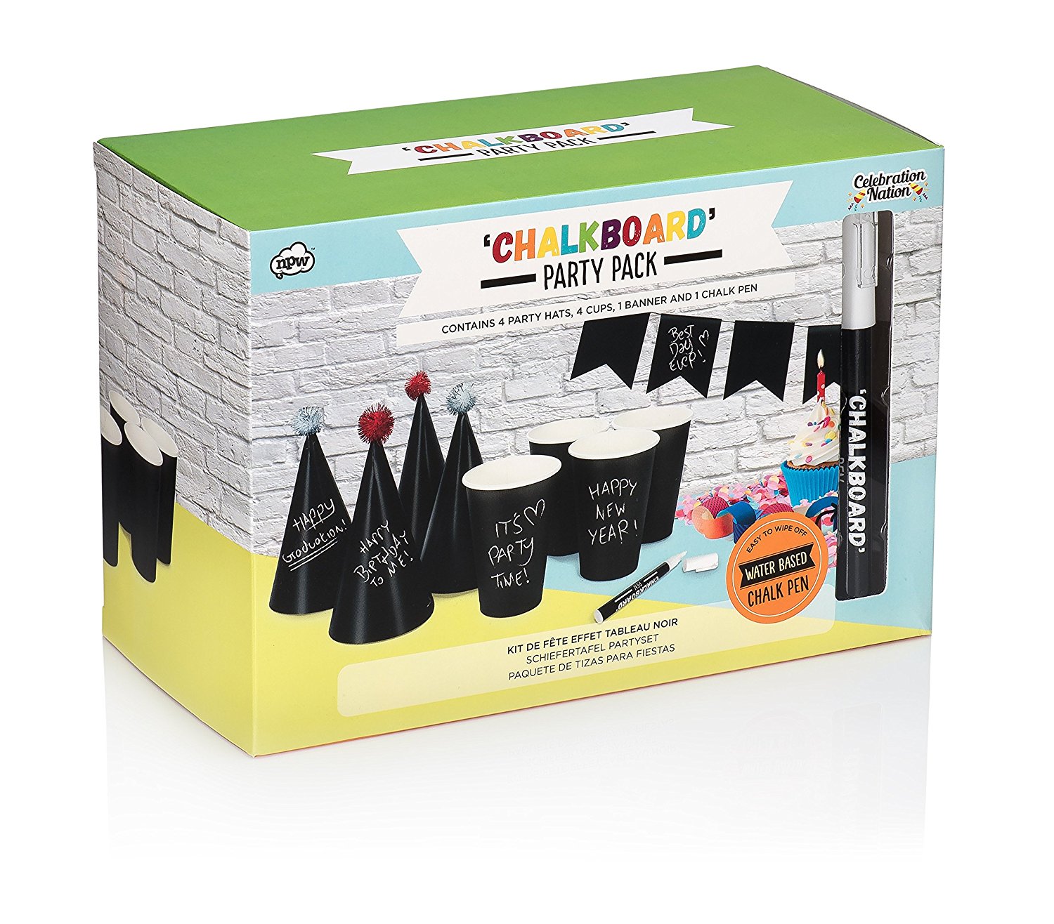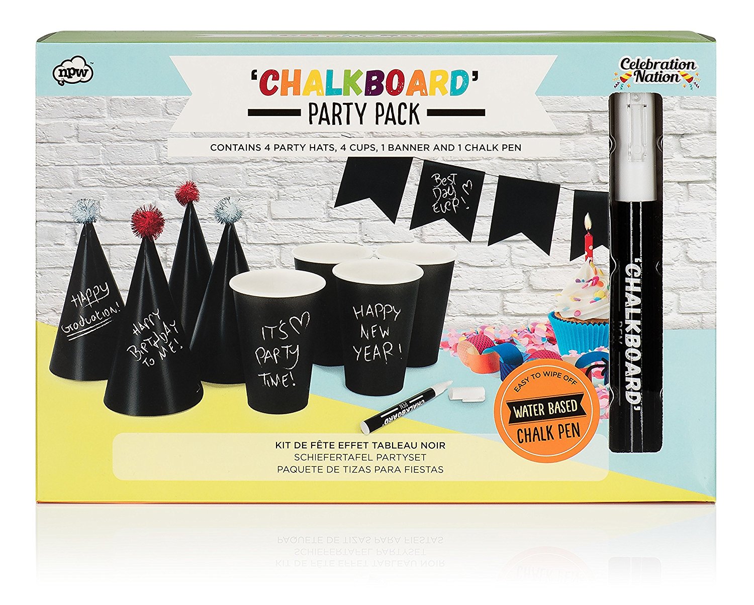 Contine 4 pahare, 4 palarii, un banner si un marker.
