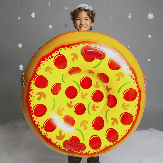 Scapati de povara unei sanii voluminoase si apelati la delicioasa pizza pentru a aluneca pe derdelus. Tot ce trebuie sa faci este sa umflii salteaua si apoi poate incepe distractia. Are lungimea de aproximativ 90 cm si este realizat dintr-un material foarte rezistent.Nazdravanele produse de la Big Mouth Inc. sunt concepute si fabricate in Statele Unite. Fiecare obiect poarta amprenta distinctiva a brand-ului: umorul poznas. De la pahare cu mesaje sarcastice, la colace de inot in forme amuzante, cani cu sloganuri nostime si glumite, aici vei gasi cate un cadou distractiv pentru fiecare persoana din viata ta.