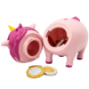 Aceasta pusculita simpatica protejeaza economiile tale, fiind potrivita atat pentru monedele din ciocolata, cat si pentru bancnotele adevarate. Toate produsele Lilalu, fie ca sunt BIGGYS sau rate de cauciuc, sunt trecute printr-un control strict al calitatii la standarde germane si internationale.In productia de rate din cauciuc si jucarii de plus, Lilalu lucreaza mana in mana cu parteneri de incredere. Acestia efectueaza un control la fiecare sase luni, pentru a garanta astfel, calitatea superioara a produselor.Valorilor fundamentale Lilalu sunt: colaborare corecta, orientare catre clientii pasionati si calitate inalta. Lilalu reuseste sa impartaseasca fericire cu fiecare articol.